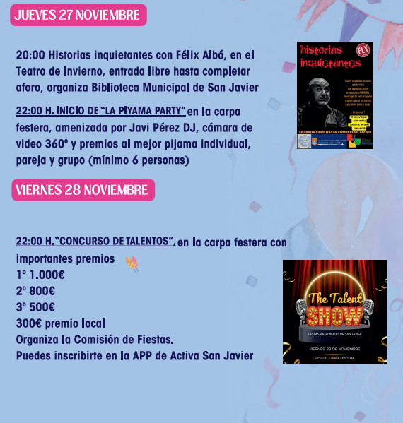 Las entradas para los espectáculos del Teatro de Invierno se pueden comprar en www.compralaentrada.com y Papelería Gala, de San Javier, excepto el monólogo de Pedro Ángel Roca que se puede... |