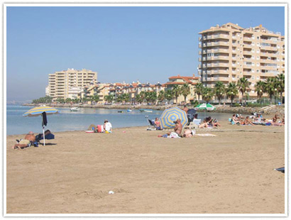 Playa semiurbana. Paradas de autobús en las urbanizaciones que comprende esta playa. Línea de autobús urbano.
